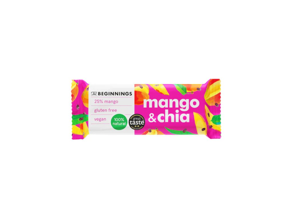 Mango&Chia bar - 40g. Vegánsky 100% prírodný RAW produkt, bez lepku, laktózy, palmového oleja,sóje, konzervačných látok a pridaných sladidiel.Ako sa vyrába 100% prírodná tyčinka zo surového manga? Jednoducho. Vezmite mango, osušte ho, rozdrvte a zmiešajte s kokosom, ovsenými vločkami a chia.