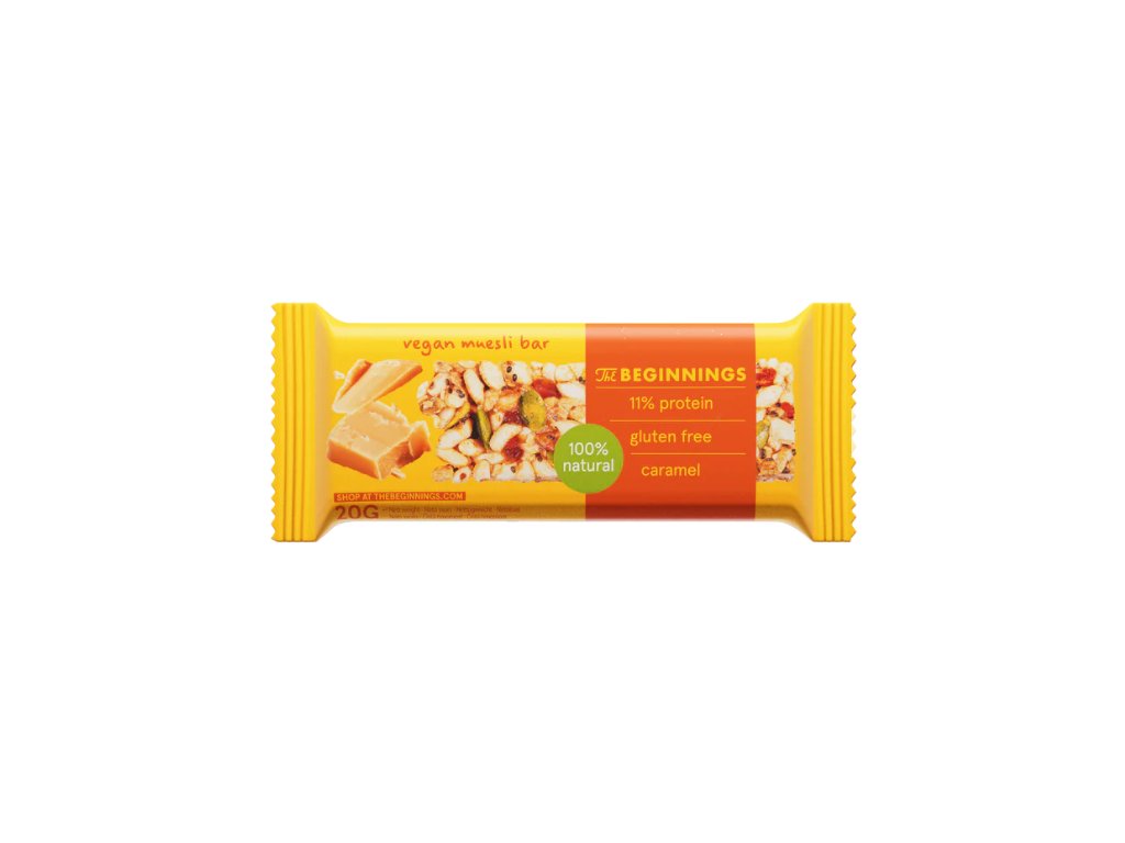 Musli karamelova tyčinka - 20g .Táto tyčinka s pufovanou ryžou, semienkami, zdravými tukmi, bielkovinami a sacharidmi je ideálnym poludňajším občerstvením alebo liekom na chuť na sladké. Je vyrobená zo skutočných a zdravých surovín, je vhodná pre vegánov a neobsahuje lepok. Vychutnajte si túto dobrotu!