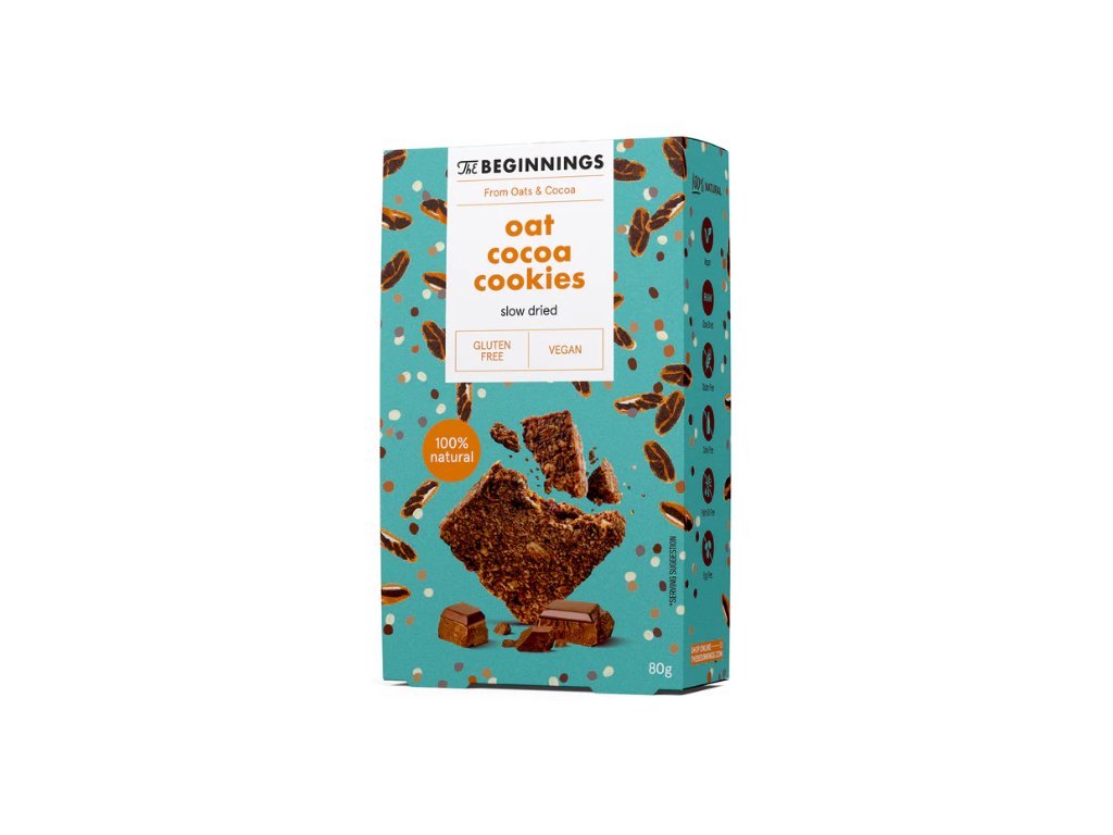 Ovsené kakaové sušienky - 80 g. 100% prírodný RAW vegánsky produkt bez lepku, laktózy, vajec, palmového oleje, konzervantov, a pridaných sladiel. Jemná ovsená chuť týchto sušienok je ozdobená